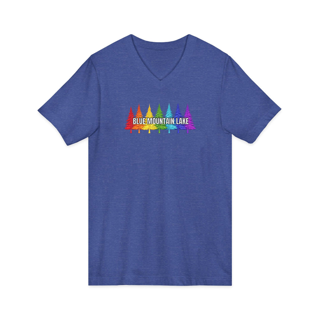 Blue Mountain Lake Rainbow Trees Unisex V-Neck T-Shirt