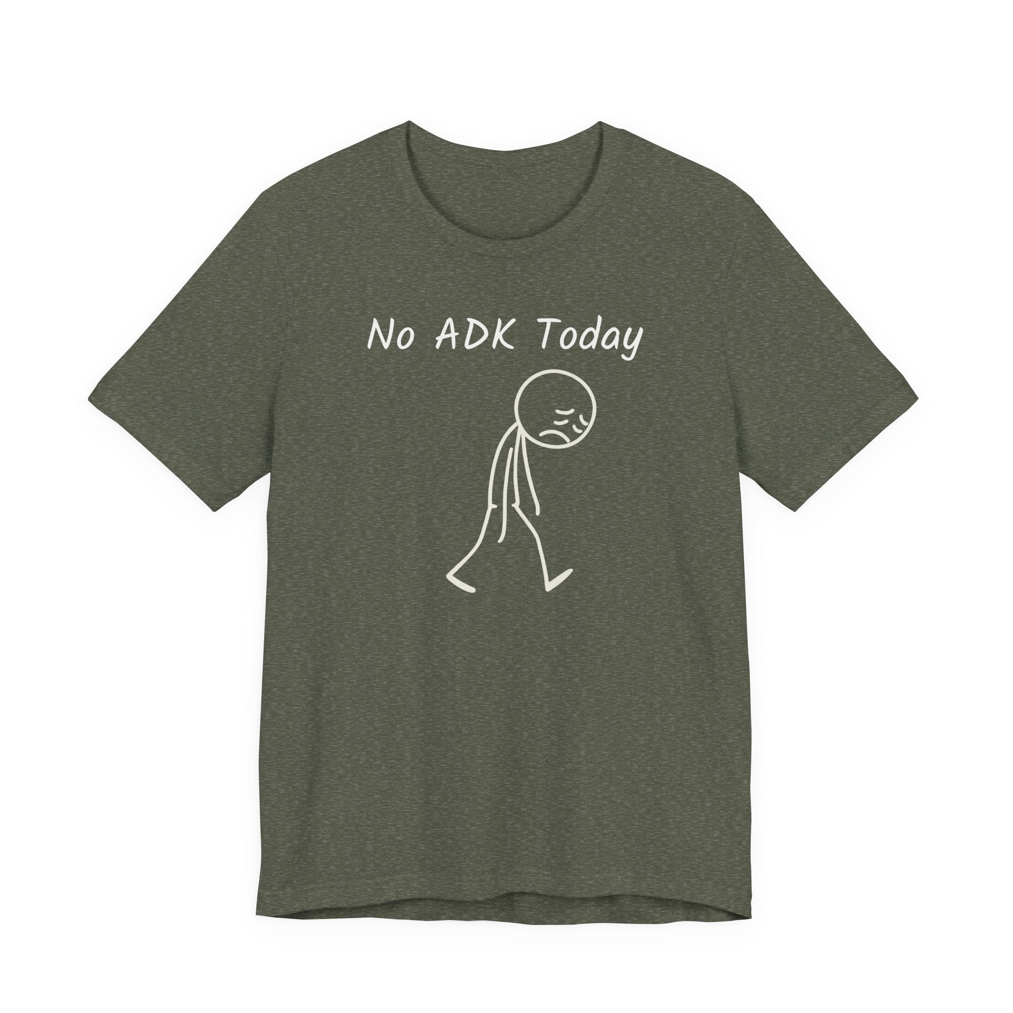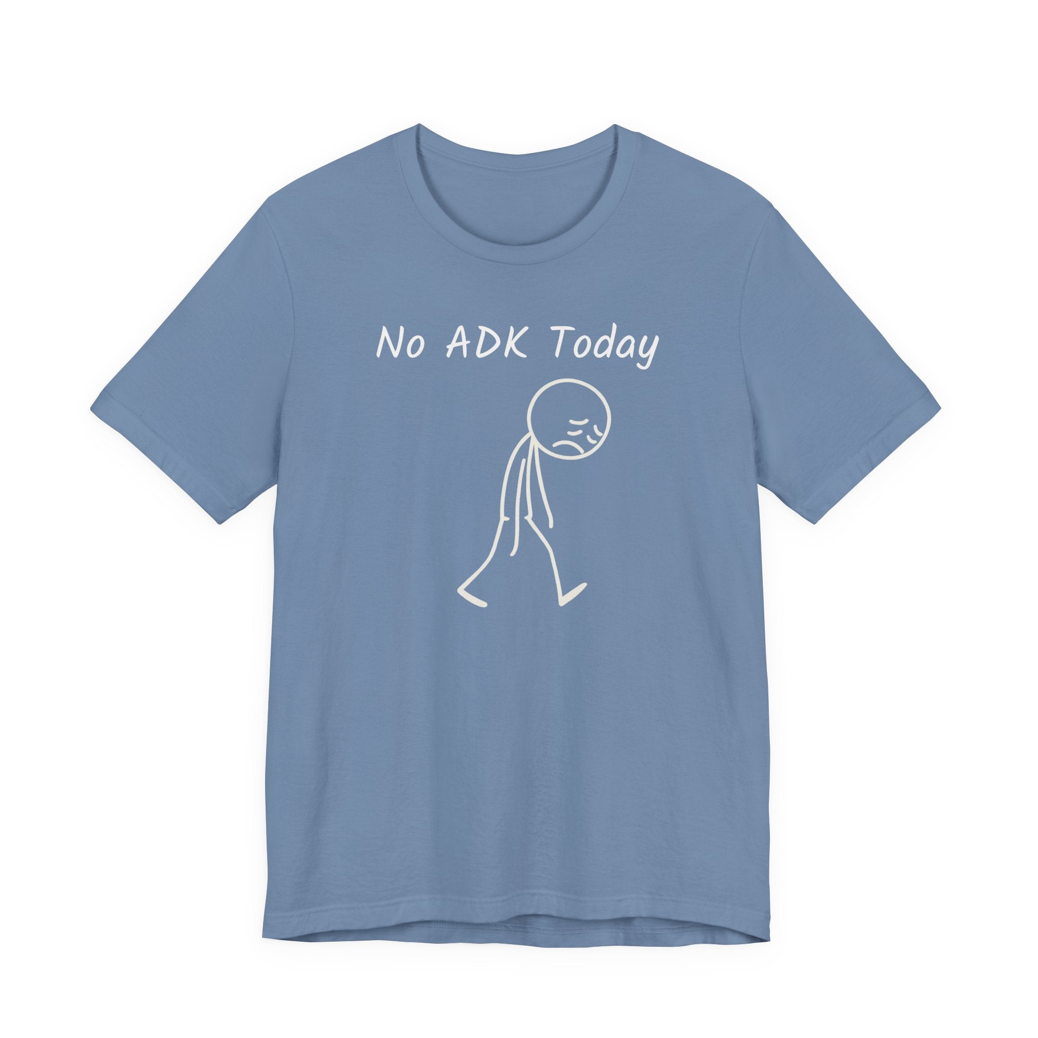 If this is how you feel when you're not in the Adirondacks, this shirt is for you. Lightweight, Bella+Canvas lived-in tee on soft Airlume cotton, a hand-drawn tired stick figure and the phrase “No ADK Today”.