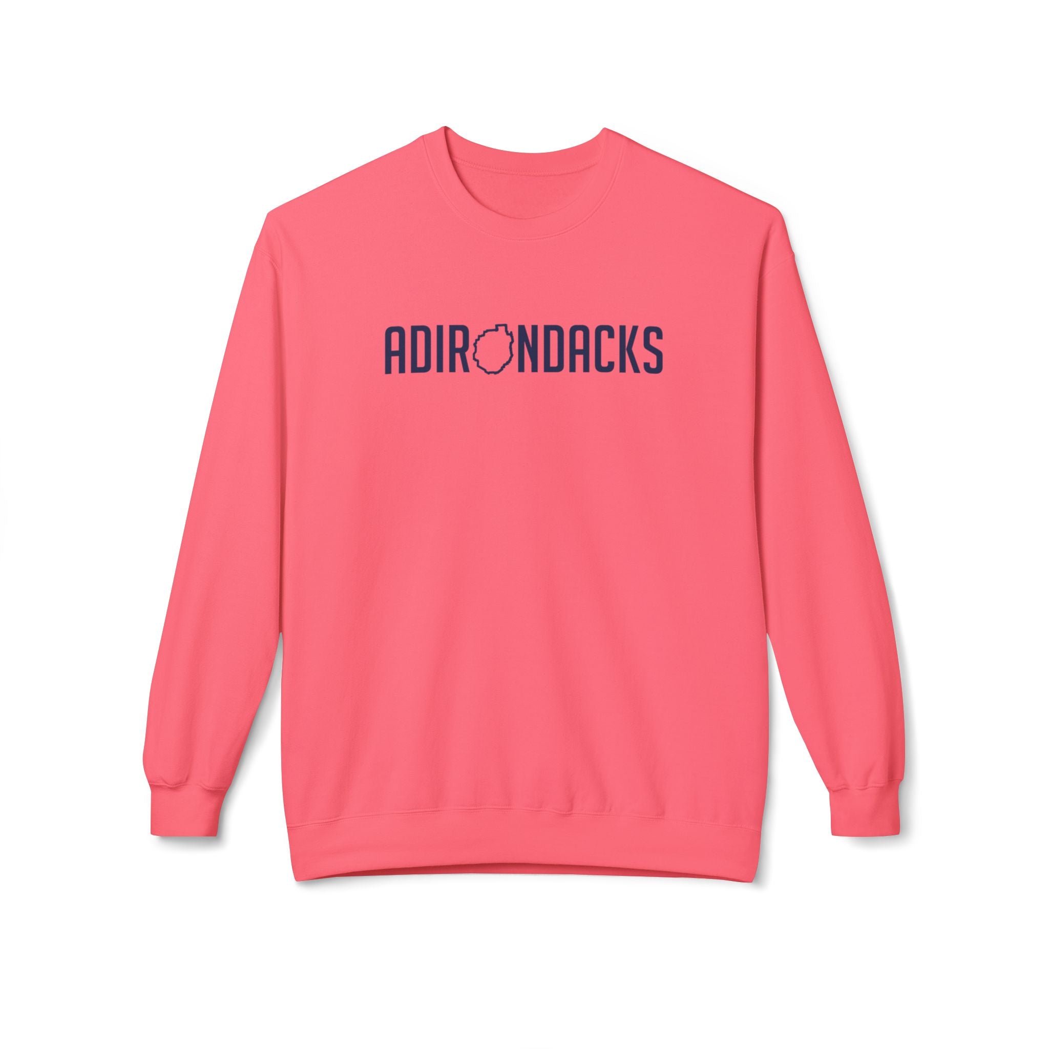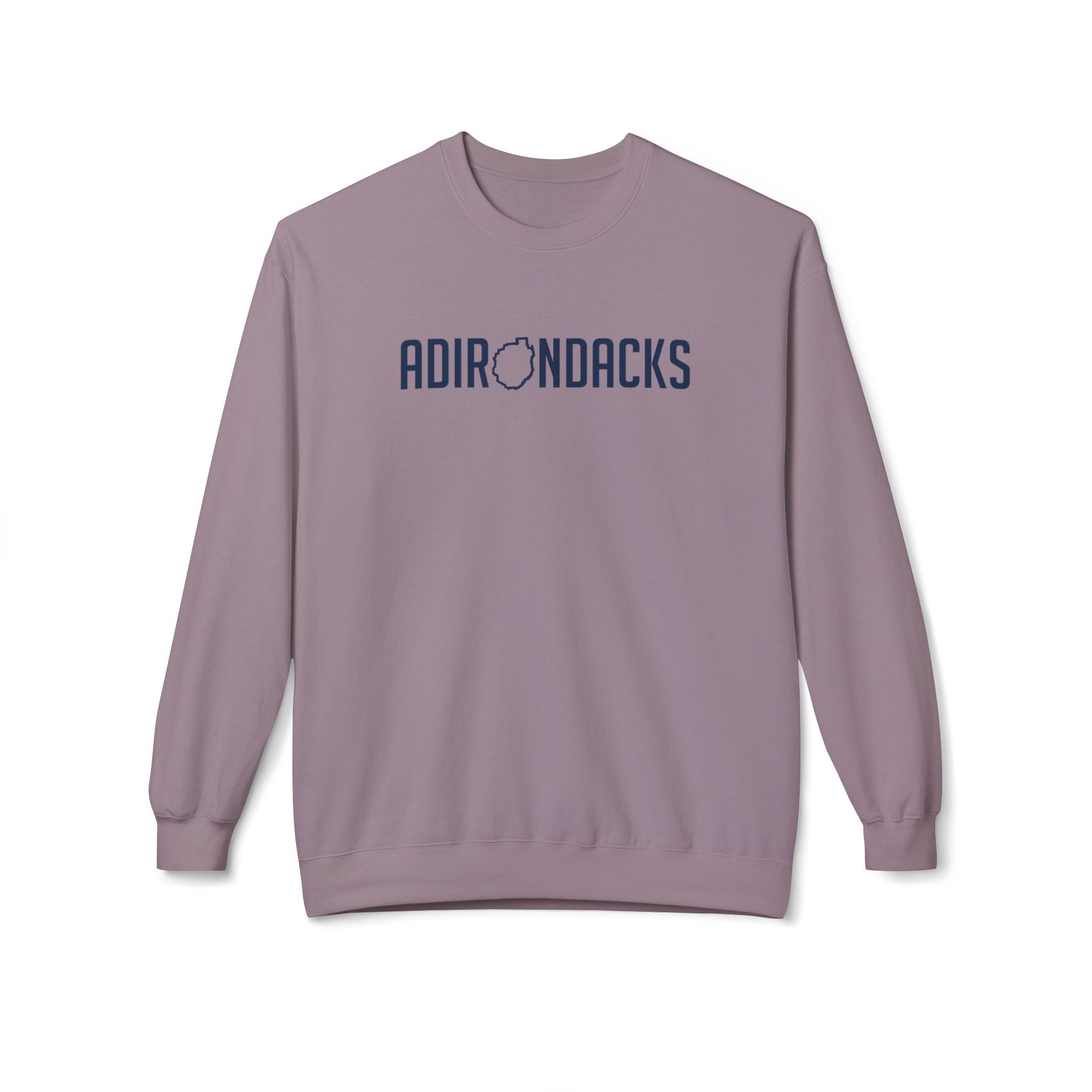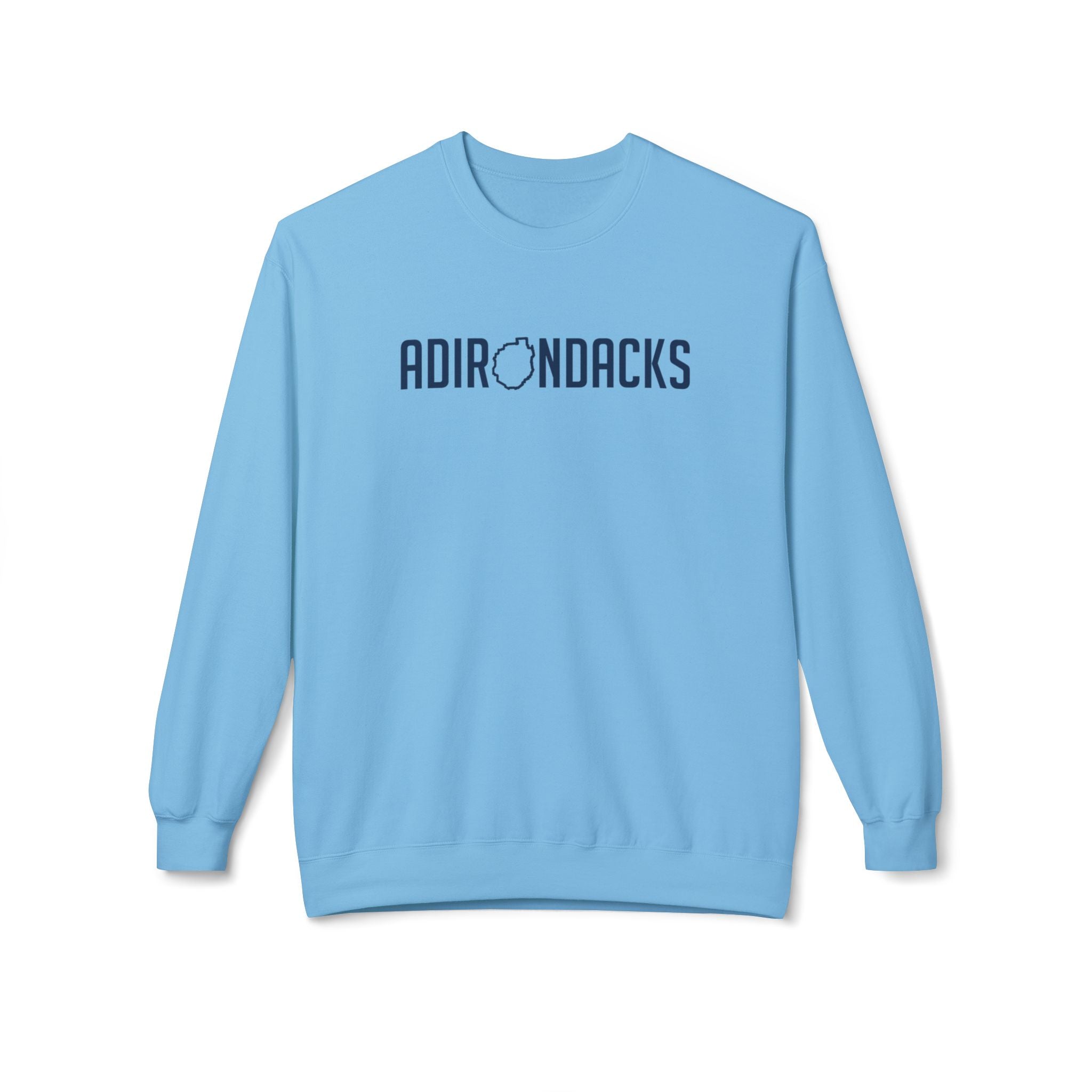 This midweight Gildan crewneck gives lived-in comfort to cool mornings and lake-side evenings. The front design of Adirondacks in blue has the letter "O" as the outline of the Park.