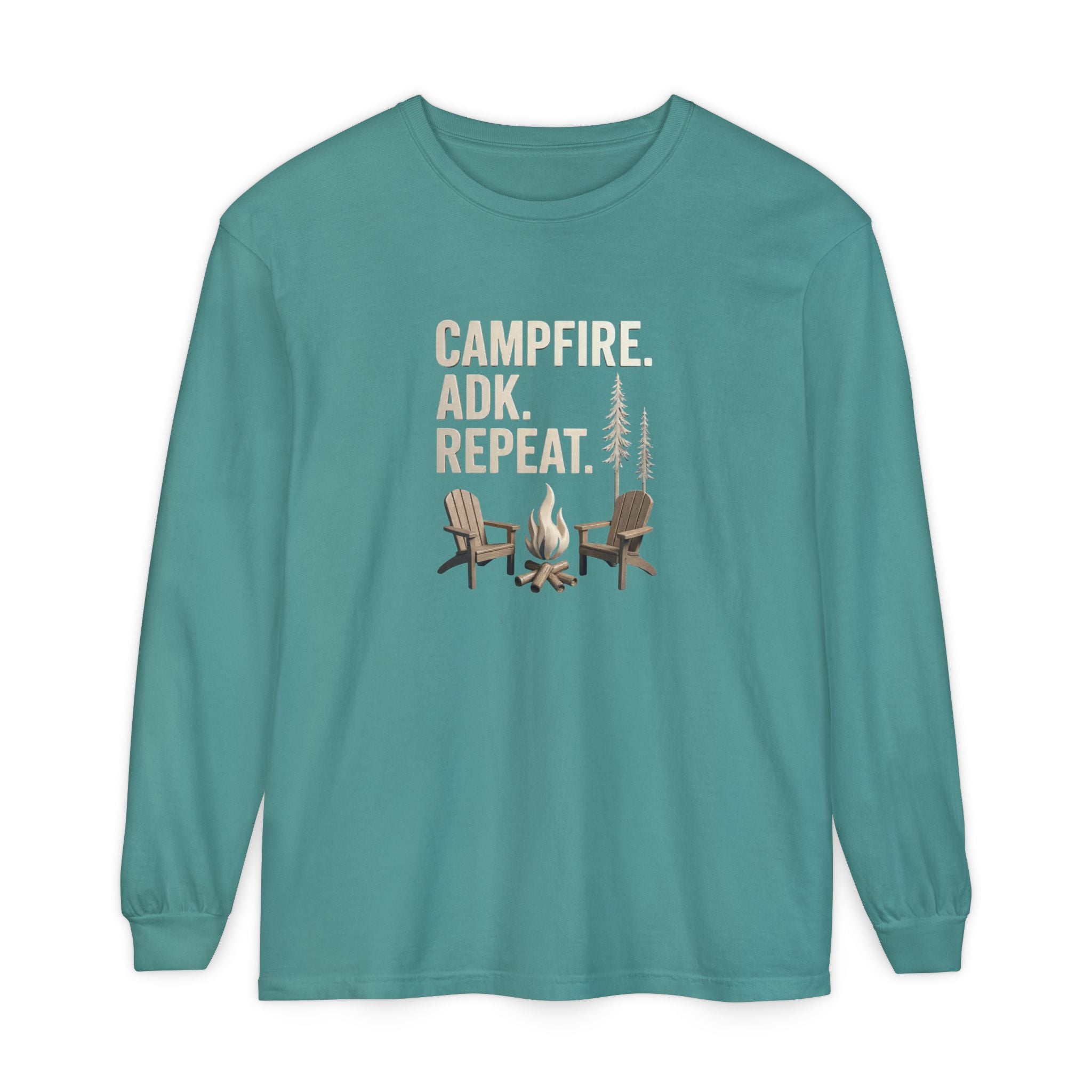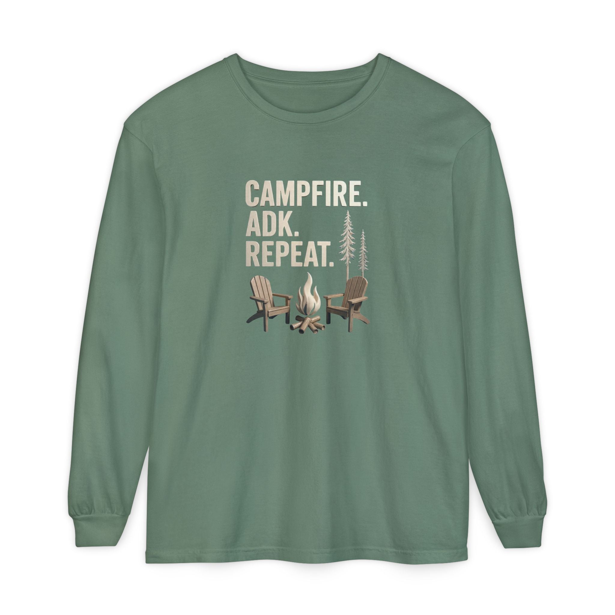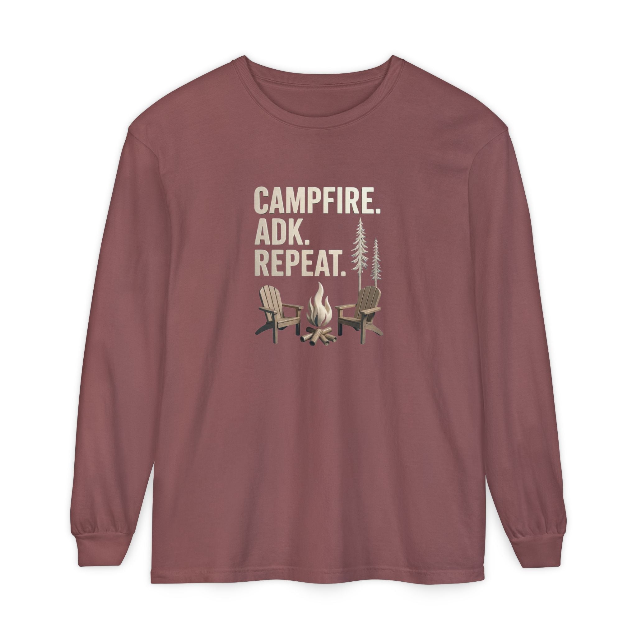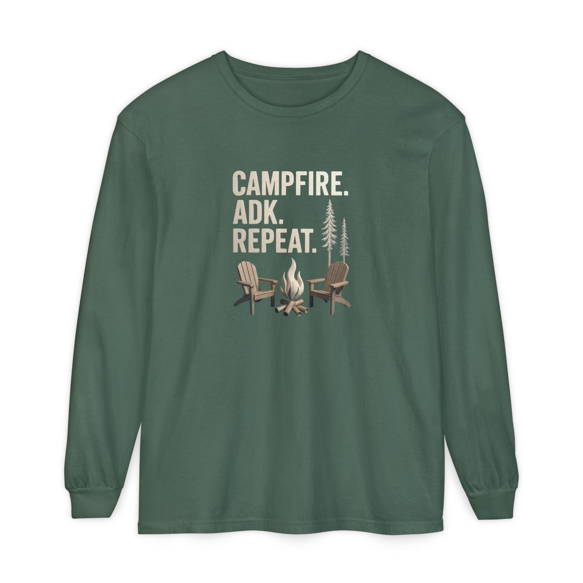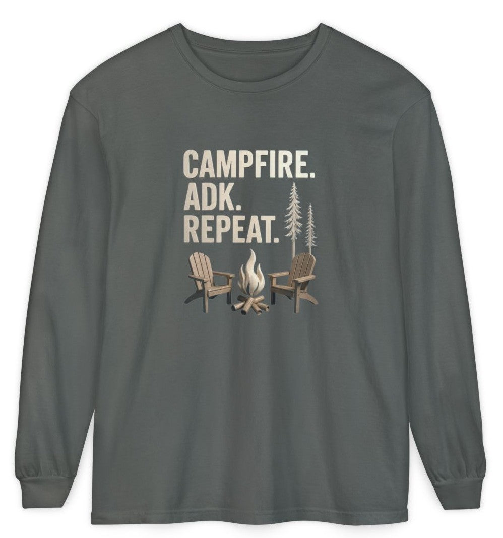 Campfire. ADK. Repeat. Long Sleeve Tee