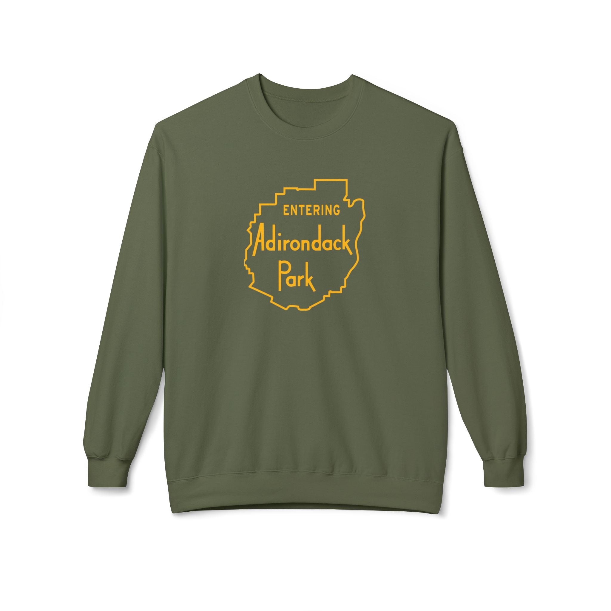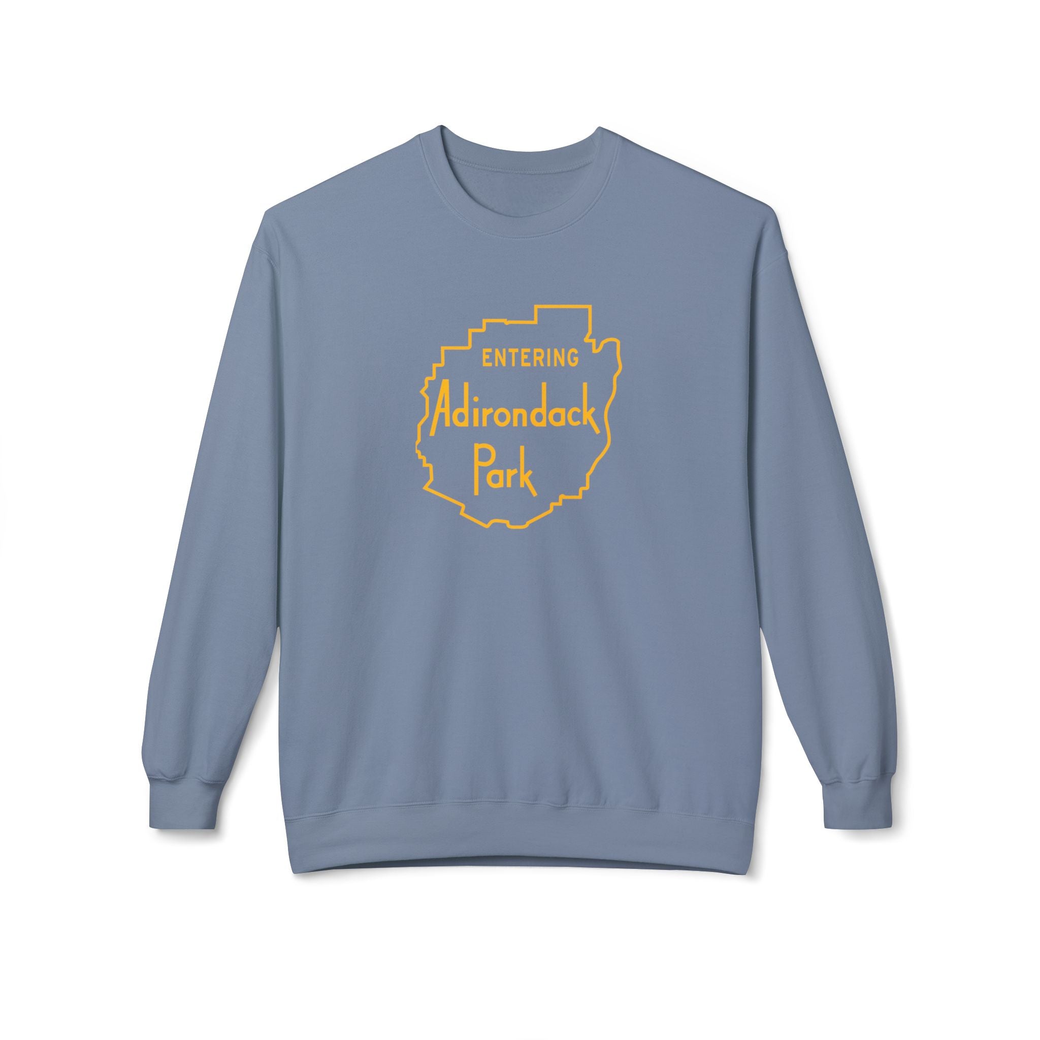 This Gildan crew sweatshirt is a 80/20 ring spun cotton with our favorite sign on it - Entering Adirondack Park. The relaxed drop-shoulder silhouette and pouch pocket make it easy to layer over a tee or base layer, while the two-piece lined hood holds heat when the wind picks up.